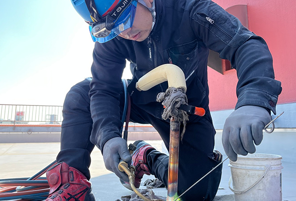 空調設備工事はもちろん知識や技術が必要ですが、意外なところでは体力を使う仕事であるということ。資本となる身体を大切に、しっかりと働いていける環境に努めています。
